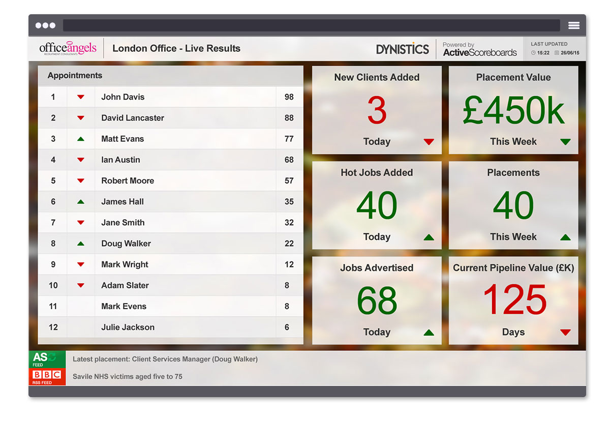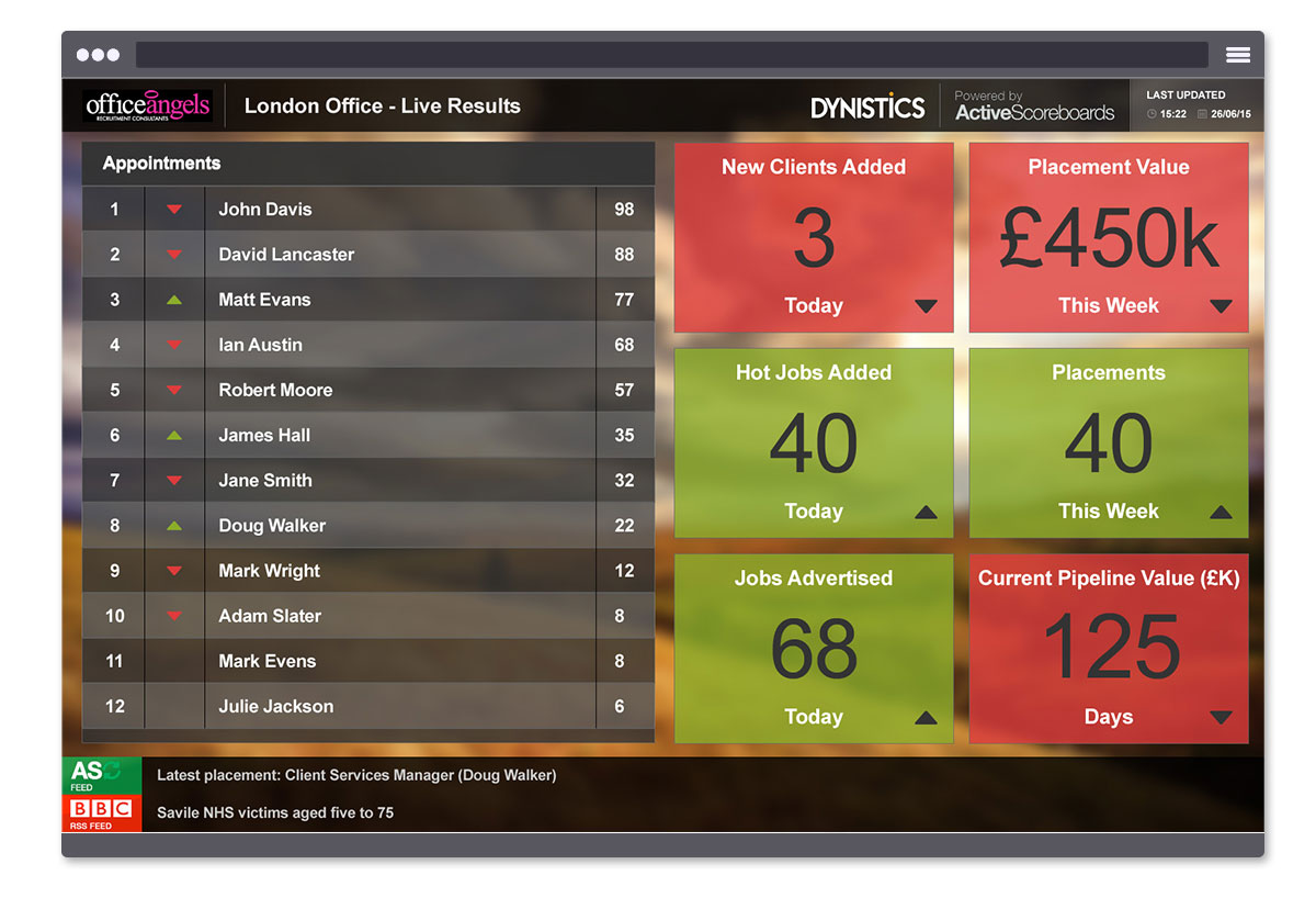 The core SaaS products produced by Dynistics are Active Dashboards and Active Scoreboards.